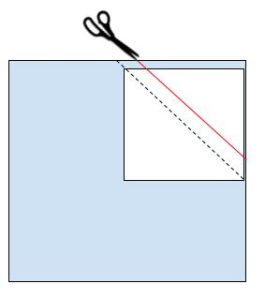 - Using a ruler and pencil, draw a diagonal line from one corner to the opposite corner on the Yellow square. Pin in place.