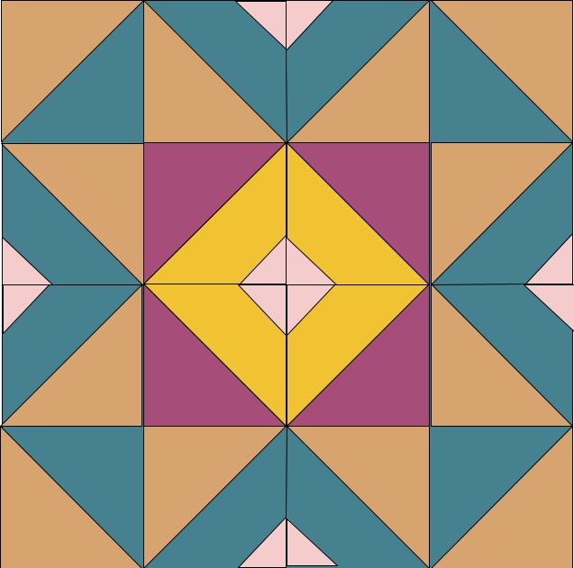 - To create eight-at-a-time half-square triangles, pair one Blue 10” square with one Tan 10” background square RST.