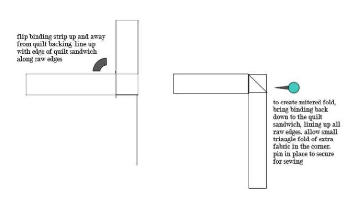 - With the quilt lying flat, fold the binding up and away from the quilt, making the binding straight with the unsewn side.