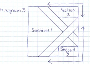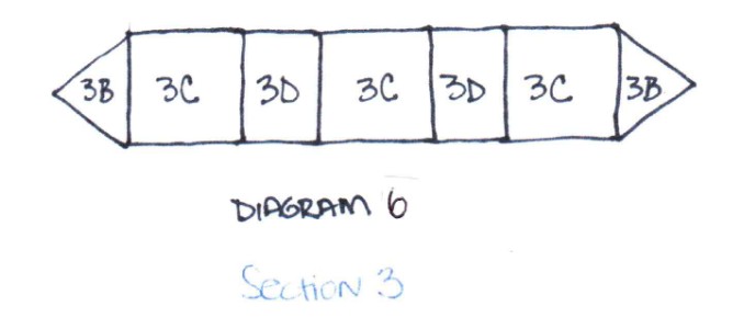 - Stitch the opposite edge of 3C to the long edge of (1) 3B, completing Section 3 as shown in Diagram 6.