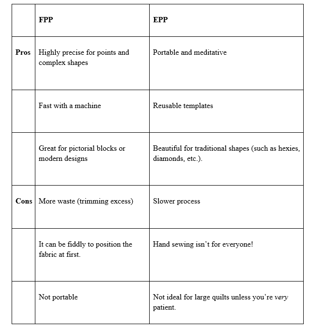 If you’ve ever heard quilters chatting about FPP or EPP and thought, Wait—what now?, you’re not alone. These two paper piecing methods pop up all over quilting blogs, pattern descriptions, and Pinterest boards. And while they sound like close cousins, they’re actually quite different.