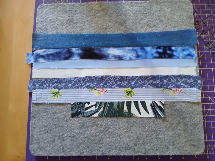 Start with a bold center. Begin your block with a strong center strip — something bright, contrasting, or patterned. It anchors your design and draws the eye in.