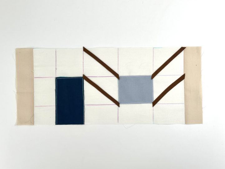- Begin with the diagonal strips and lightly glue them over your guidelines.