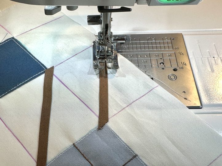 - Sew a normal (1/4”) seam allowance each side of this line.