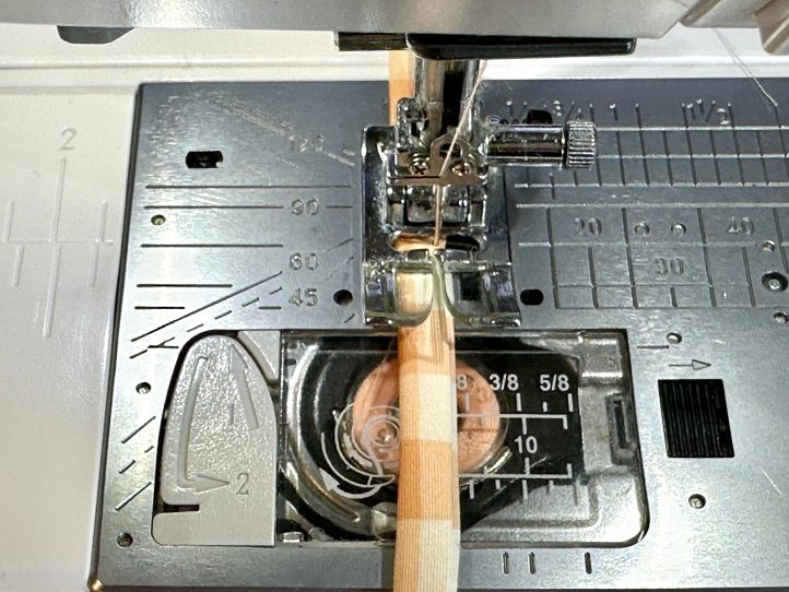 TIP: Although the tool that we are using is a bias tape maker, the strips do not need to be cut on the bias because they do not need to negotiate curves or stretch in any way. Straight strips are more stable in this setting.