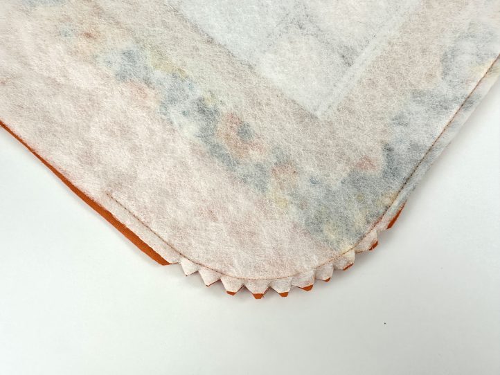 - Attach the batting to the wrong side of the front panel with a hot iron to fuse the batting to the panel and trim if needed.