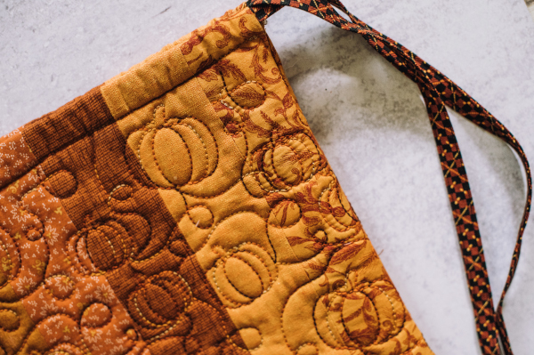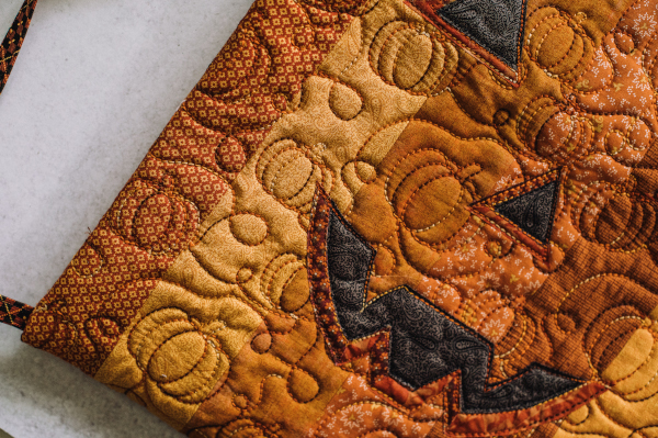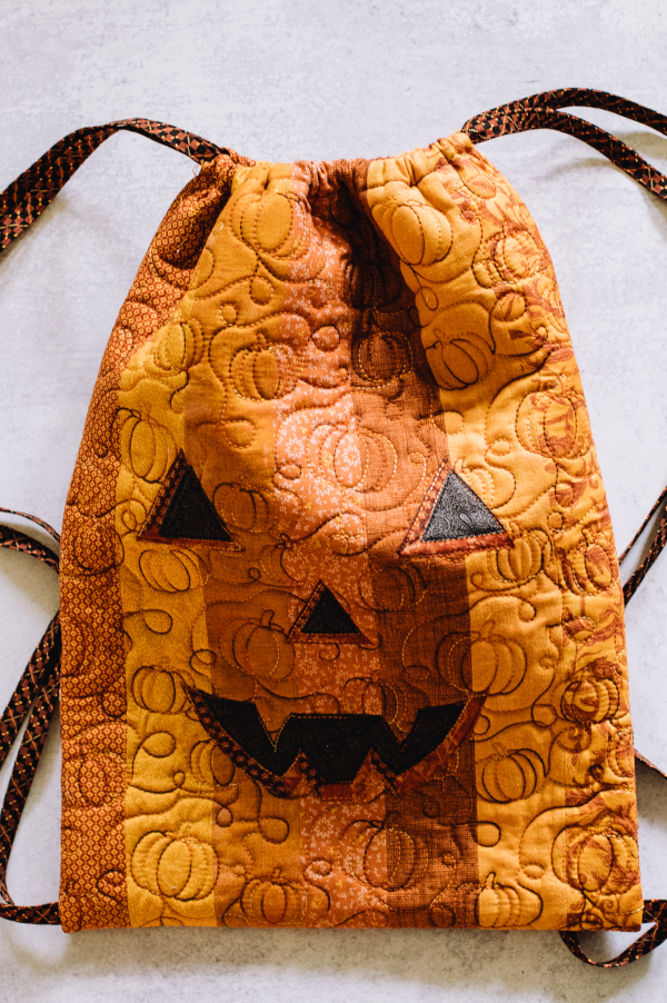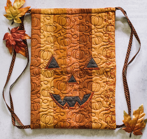 Get in the Halloween spirit by creating this adorable treat bag! Originally featured in our sister magazine We Like Sewing, this intermediate quilting project from Laura Strickland is designed using precut jelly roll strips and cinches shut to keep your child’s candy secure during their Halloween adventures. Finish your treat bag pattern with applique face details and delicate pumpkin free motion details.