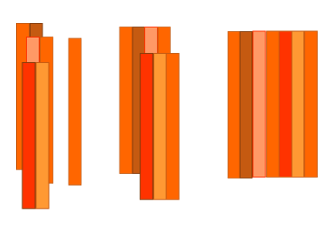- Piece together the 2 1/2” WOF strips to form a strip set. Sew into 3 pairs. Press the seams. Sew one pair to remaining single strip. Press the seam. Sew the other two pairs together to form a 4 strip set. Press the seam. Sew the three strip and four strip set together. Press the seam. You should have a strip set that measures 14 1/2” W X approximately 40” L. Trim the ends to remove the selvage and to square the end. Trim to exactly 40” L.