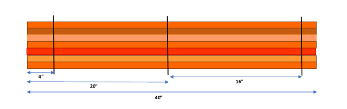 - Using a water or heat soluble pen, mark the strip set in the middle at 20”. Then mark on each end 4” from the end.