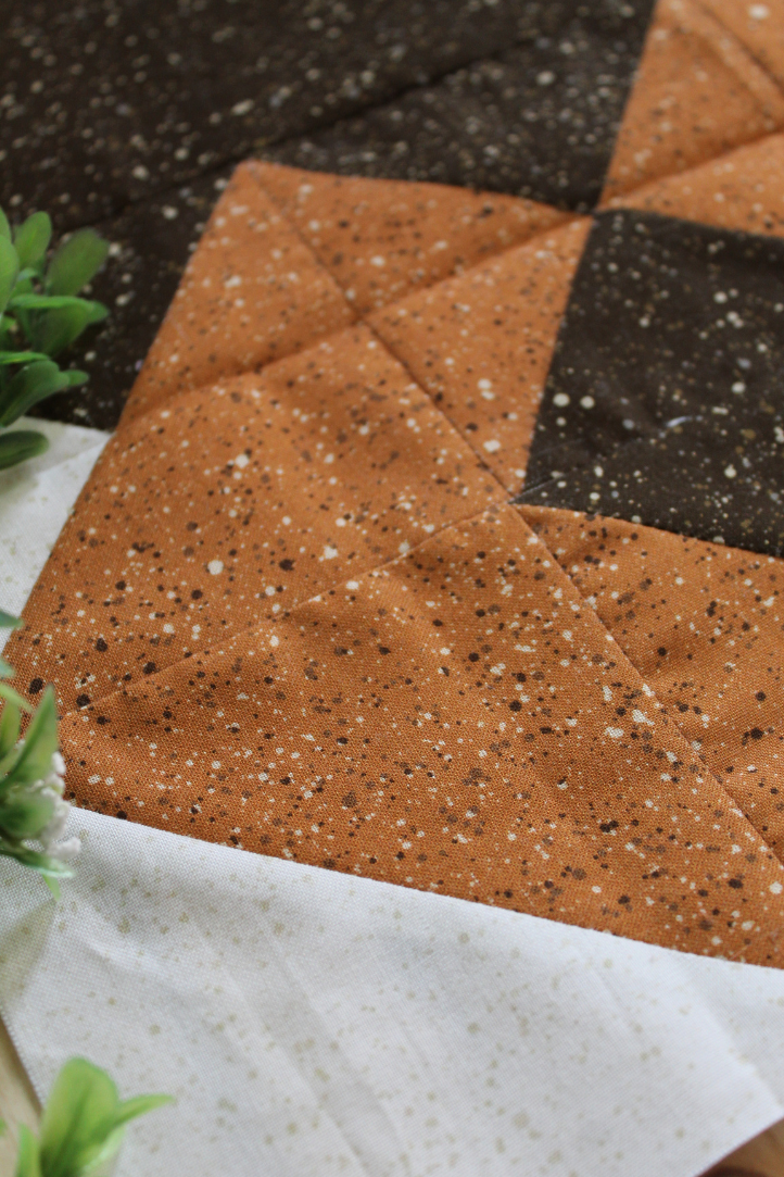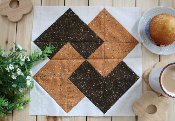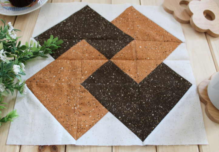 Card Trick consists of three smaller blocks/squares: half-square triangle (HST), quarter-square triangle (QST) and split-triangle blocks/squares.