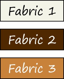 Fabric 1: Cut two 5” squares and one 5-3/8” square.