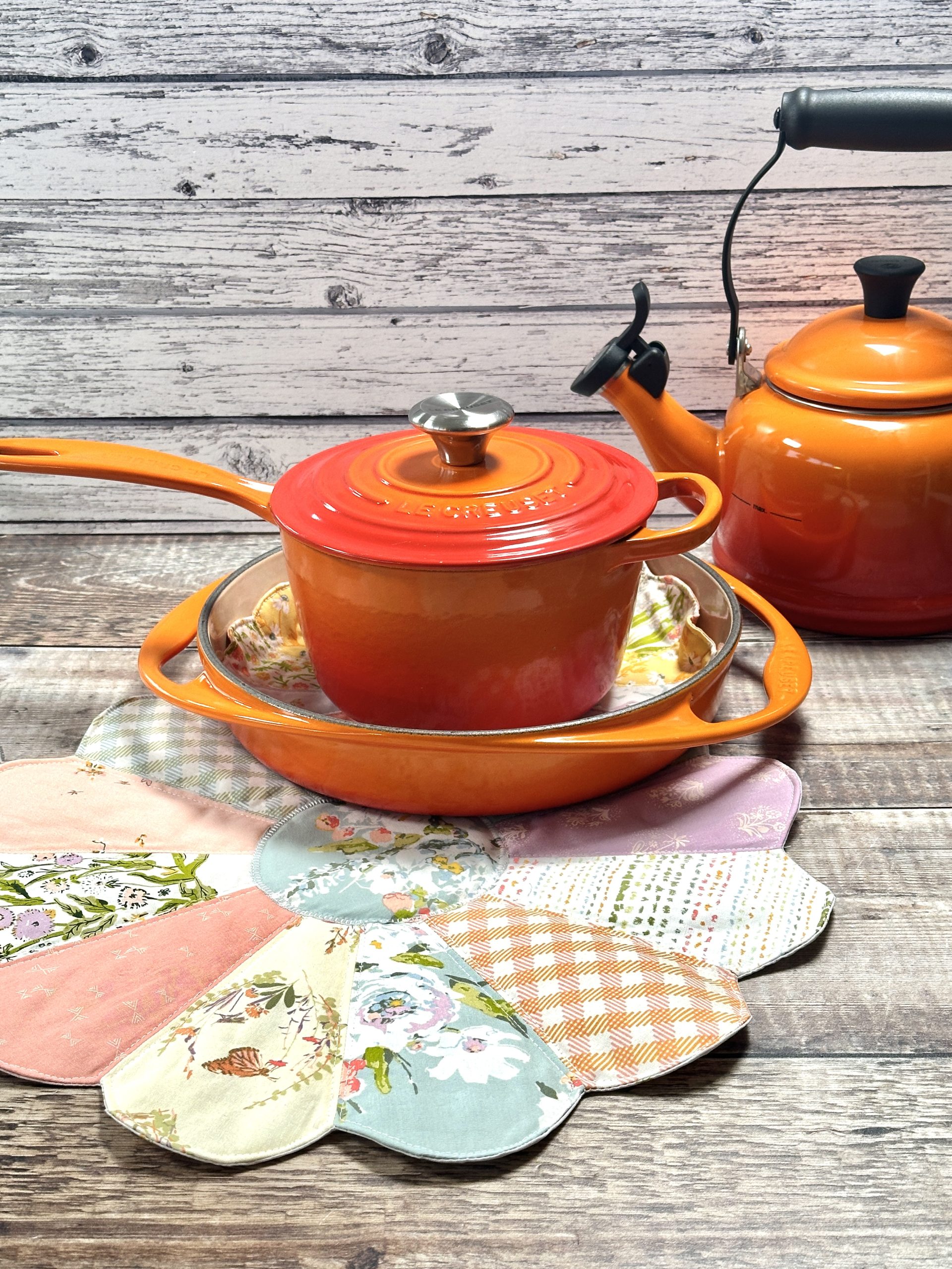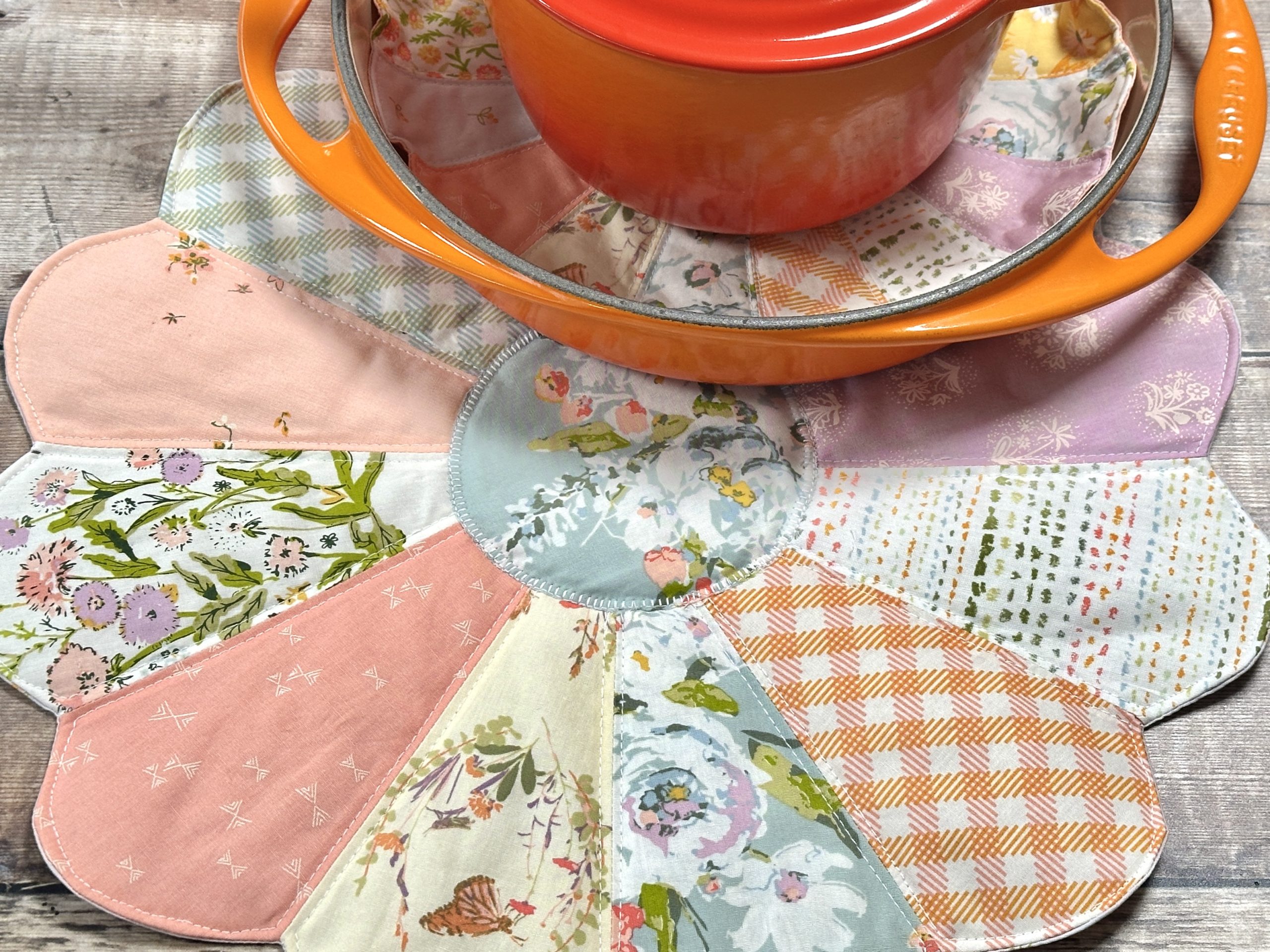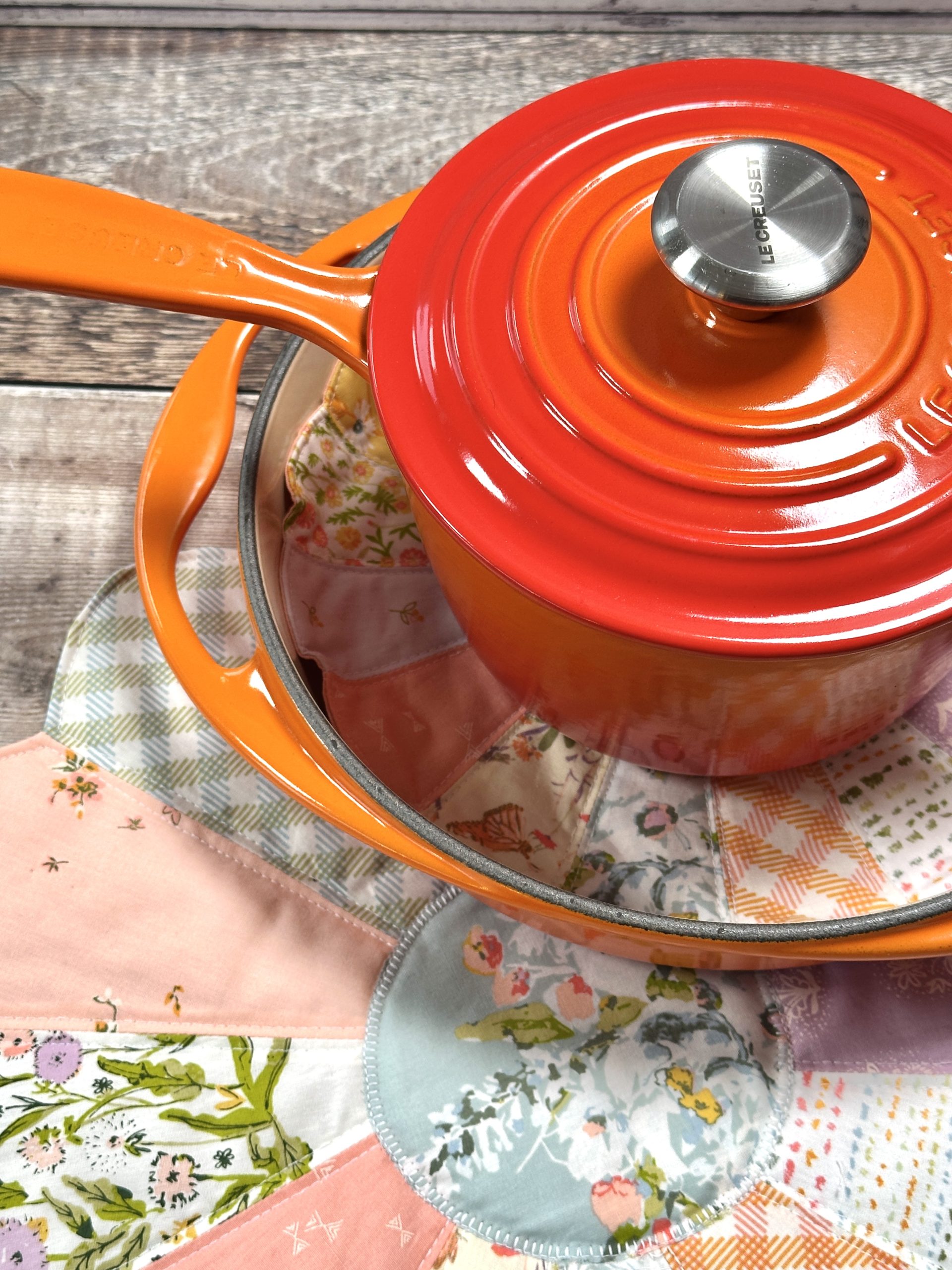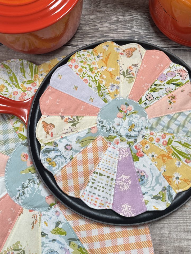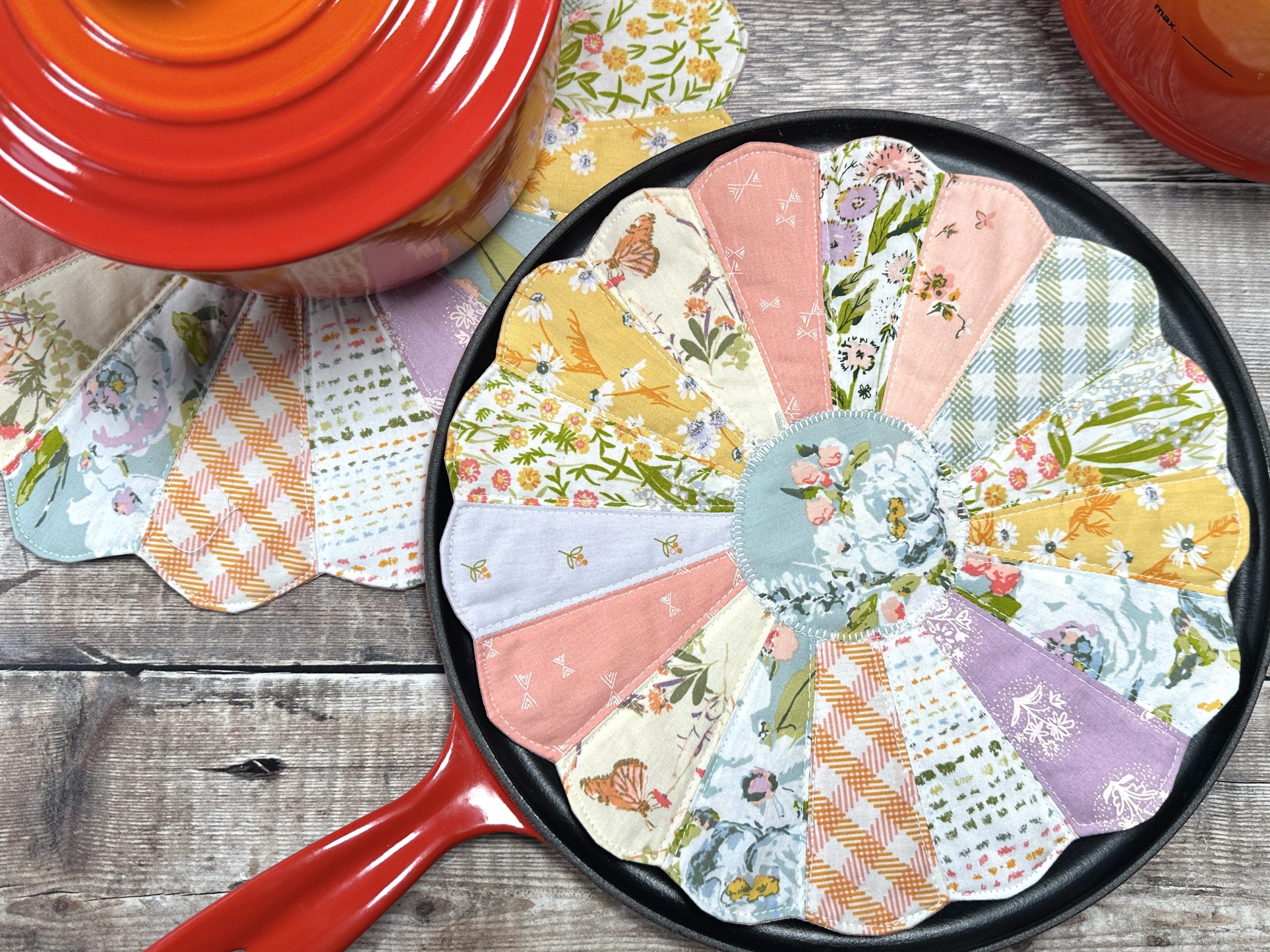 We know that our readers love creating quilting projects for their kitchen and dining room and we’re so excited for you to see these darling pan protectors! Designed by Debbie von Grabler-Crozier, this kitchen quilting pattern is ideal for scrappy quilting and uses the classic Dresden plate design. We also love this idea as a make-ahead project for Mother’s Day, as Mom will love this thoughtful and practical homemade gift. Keep your beloved pans safe from scratches with this whimsical stashbusting project.