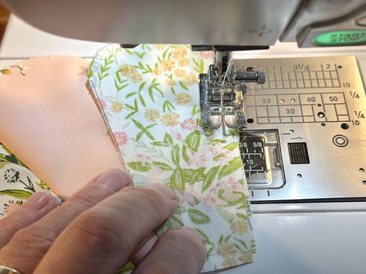 7. TIP: The center interfacing will usually be enough to hold the center as you sew. If not, use a tiny bit of fabric glue to hold the edges.