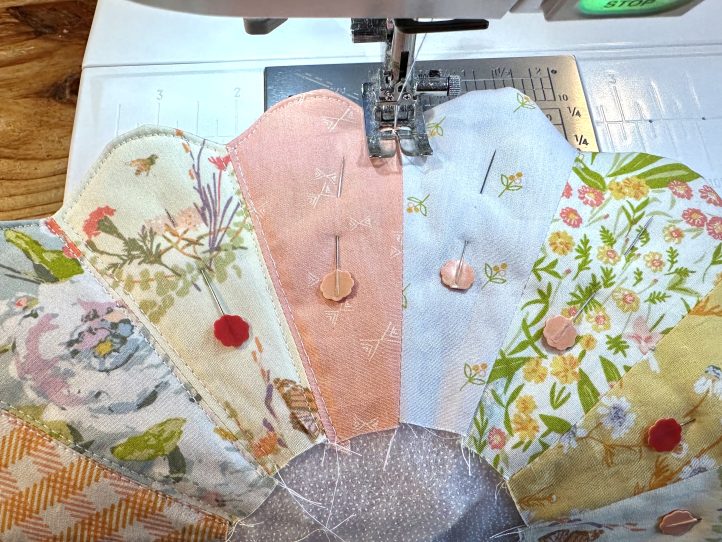 1. Cut the fans out for each Dresden and sew them together on the side seams.