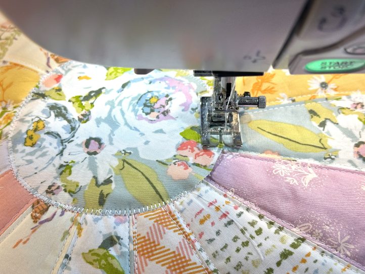 8. Use a decorative stitch (by machine or hand) to attach the center of the Dresden.