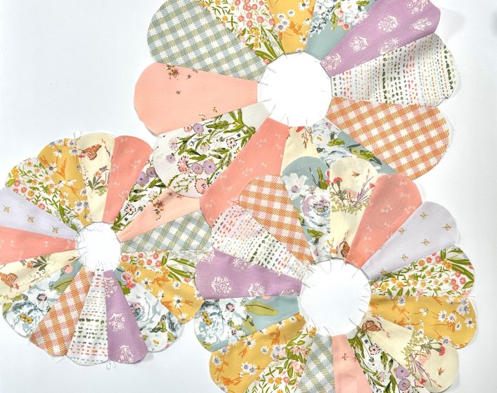 • Fans from the assorted fabrics for each Dresden using the size that you wish to make from the template.