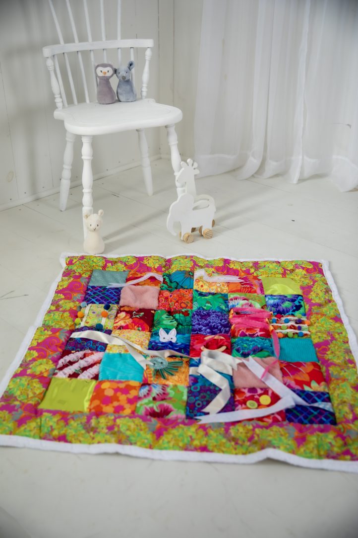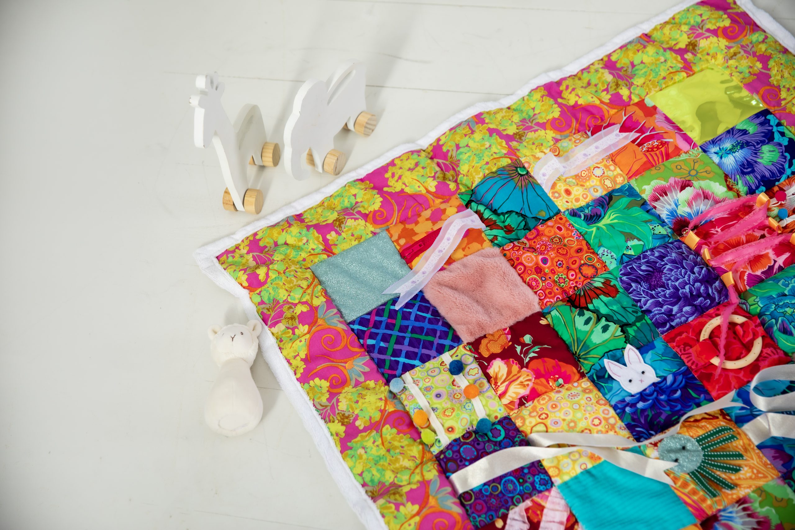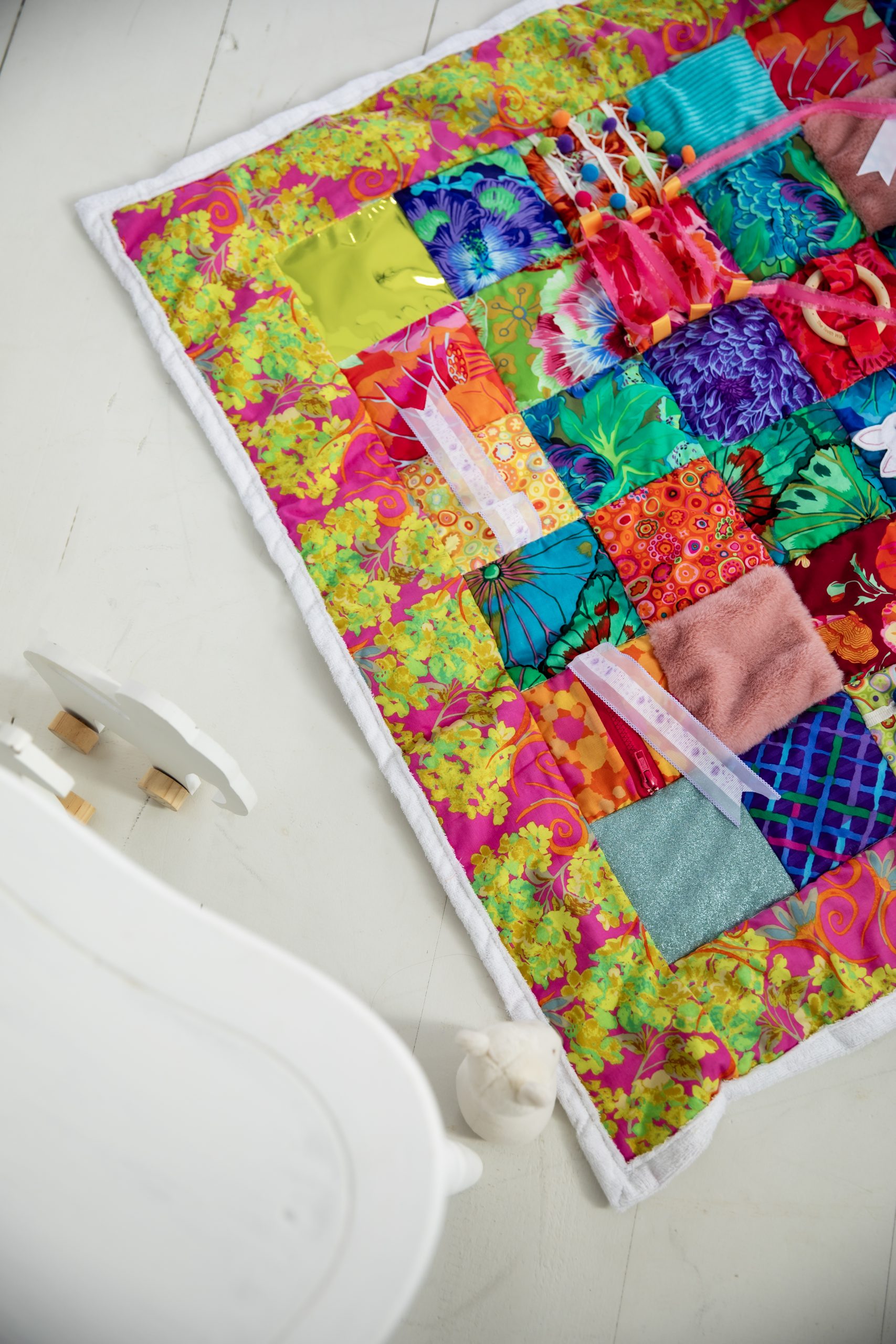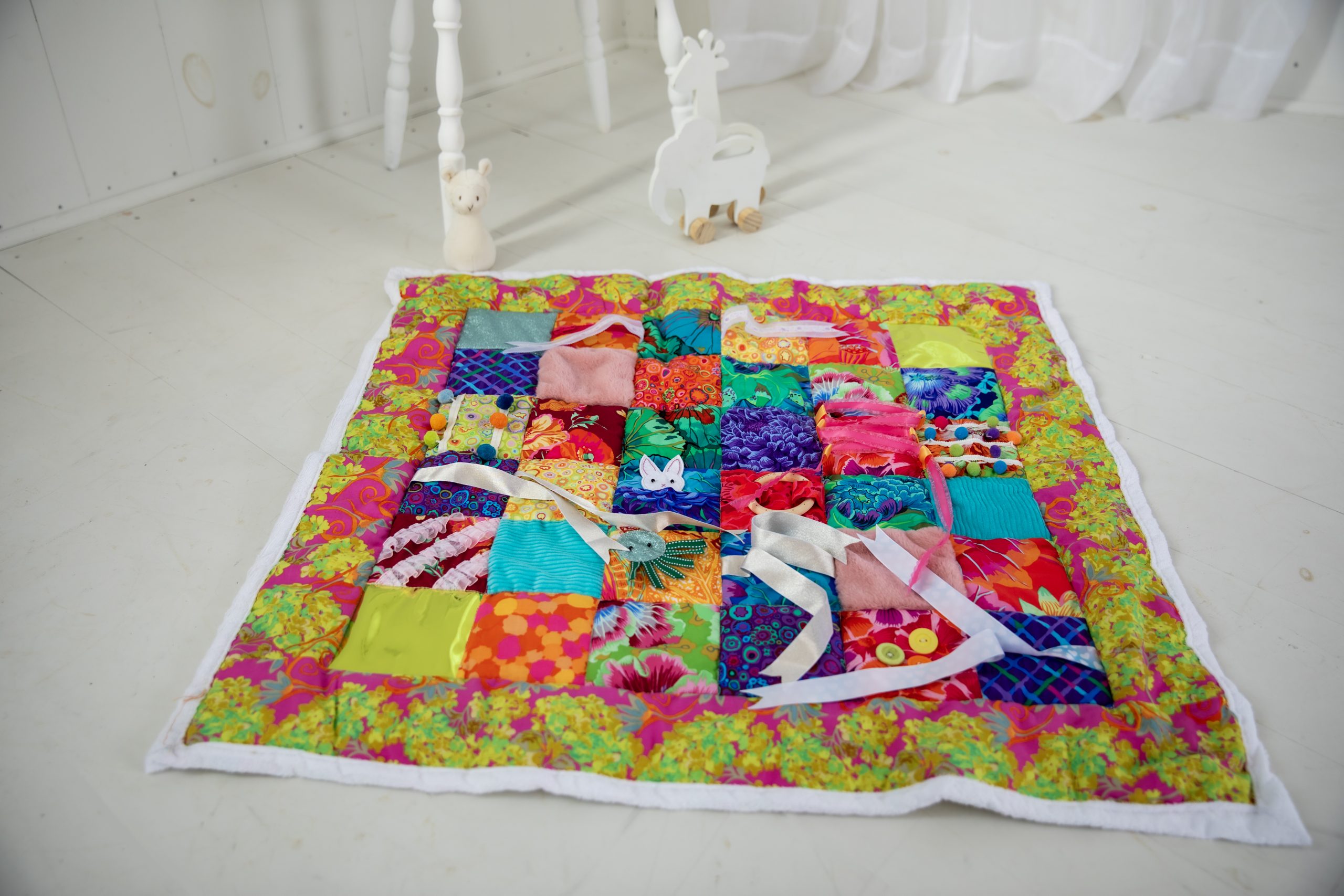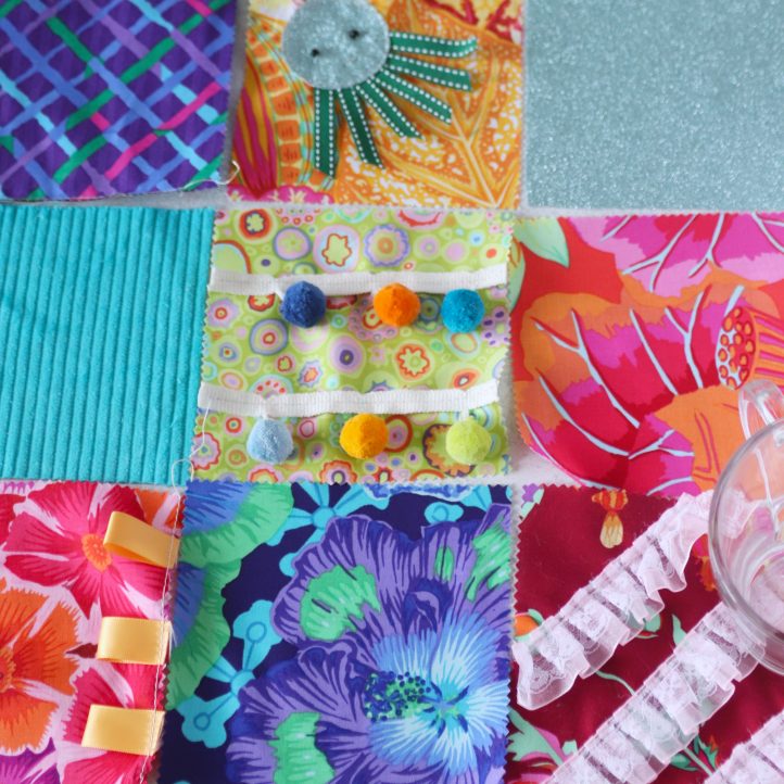 Editor’s Note: This project contains small pieces. Please make sure that an adult is present when children are playing with this sensory quilt.