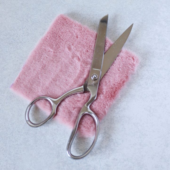 3. Trim two 5-inch squares from a piece of super-soft pink faux fur.