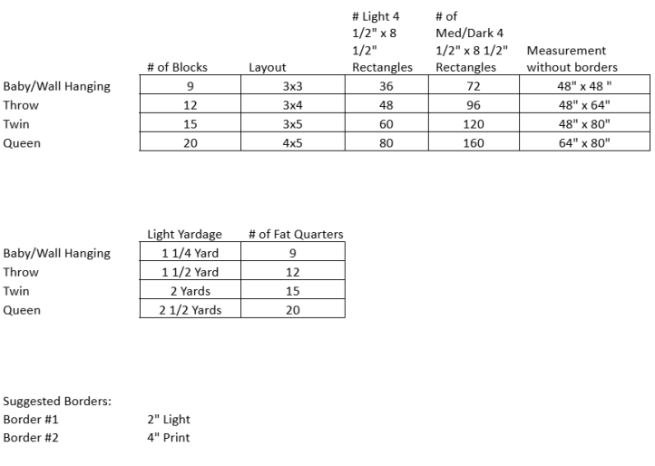 - Border, Back, and Binding fabric not included as it depends on how you will complete the project. Borders are very personal in a scrappy quilt.