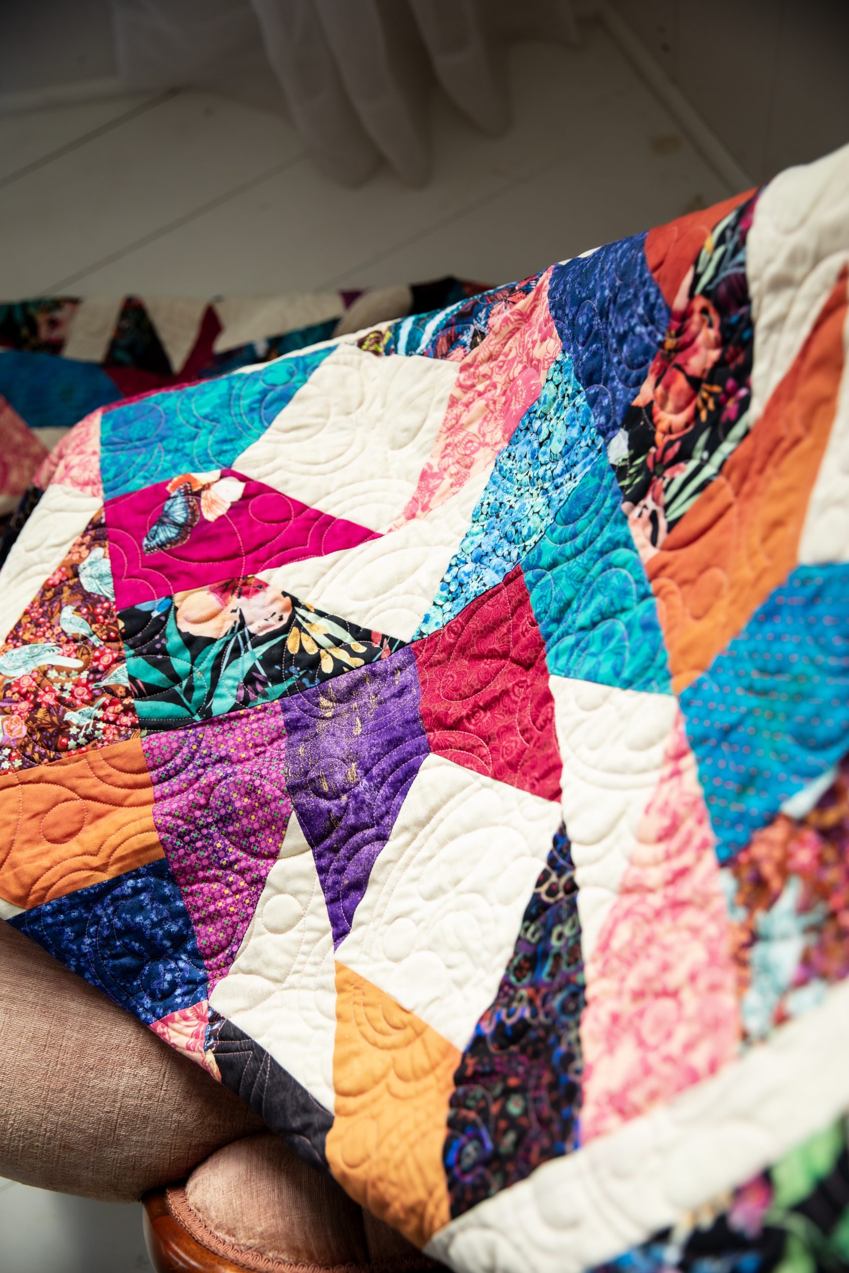 Gather your fabric scraps or fat quarters in rich blues, purples, and pinks to create a quilt in colors of a winter sunrise. Designed by Megan Farrell, this quilt pattern features a modern arrow design in eye-catching colors combined with soft, creamy white. The designer has included measurements for multiple quilt sizes, so that you can sew a baby quilt in trendy neutrals for your next baby shower and a bold throw quilt to give your home a burst of bright colors.