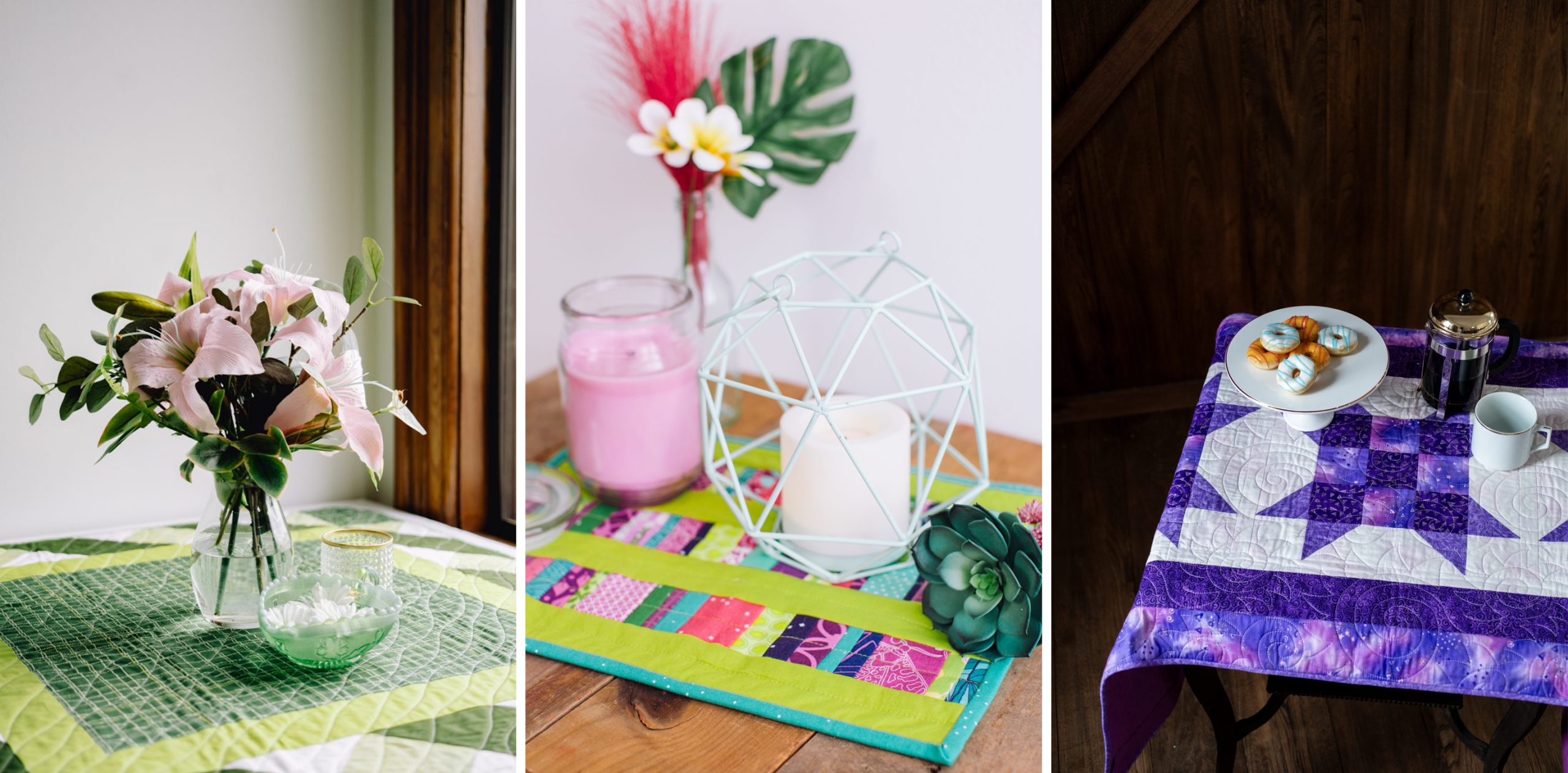 The Farmer’s Daughter quilt block has a long history. Now you can give that block a whole new look with our Violet Farmer’s Daughter Table Runner. Show off your favorite spring colors with this stunning piece! This is a great way to put a cool spin on a quilting classic.