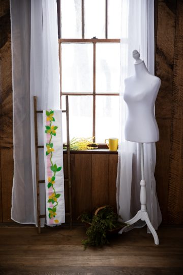 Decorate awkward, blank wall space with a gorgeous trail of quilted spring blossoms. This wall banner pattern from Debi Schmitz is designed to fill narrow wall surfaces and features a winding vine of cheerful yellow flowers. Composed of eight quilt blocks, this wall quilt pattern’s details are blanket-stitched by machine and are easy to customize ... Read More